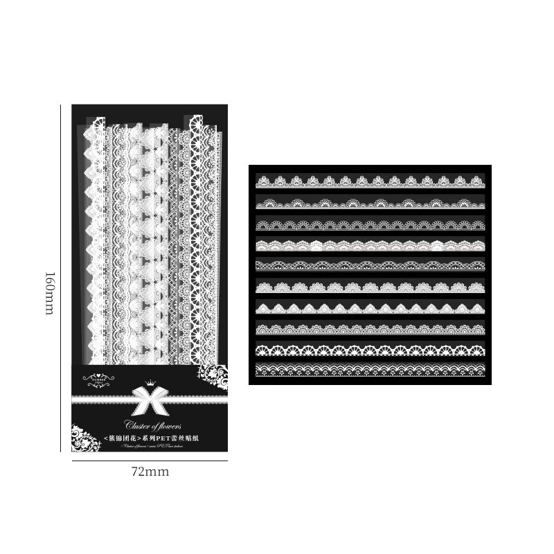 Valkoinen koristeellinen pitsinauha 10×150 mm Hienot elegantit pitsimotiivit Itsekiinnittyvien nauhojen sarja yksityiskohtaisiin luoviin koristeluihin