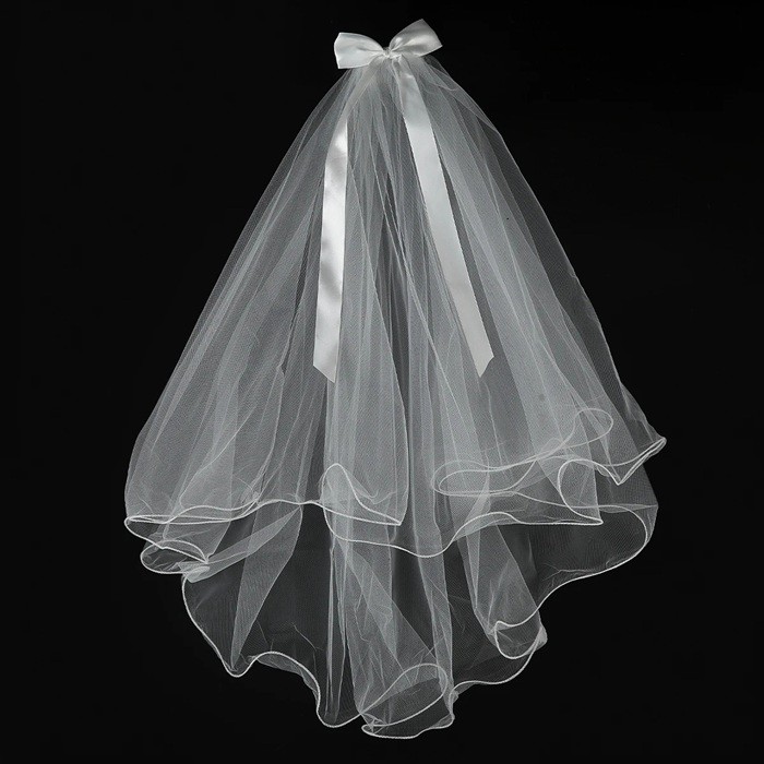Valkoinen tyllihäntä hääverho, jossa on nauha Tyylikäs verho polttariin Hääjuhlan hiuslisäke