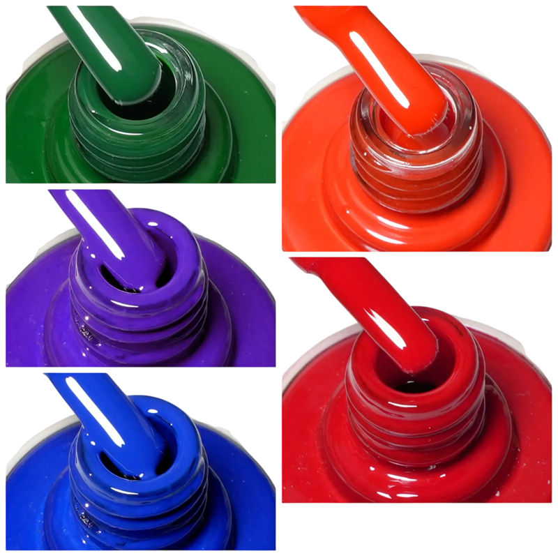 Setti edustaa tasapainoista yhdistelmää suorituskykyä, mukavuutta ja hellävaraisuutta. Ilman HEMA ja TPO koostumus tekee siitä sopivan pitkäaikaiseen käyttöön ilman liiallista kuormitusta kynsille. Kesto jopa 28+ päivää auttaa ylläpitämään siistiä manikyyriä pitkään. Yhteensopivuus UV- ja LED-lamppujen kanssa mahdollistaa joustavan käytön eri laitteiden kanssa. Värikäs viiden tuotteen kokoelma on käytännöllinen ratkaisu ammatillisen ja kotikäytön kynsivarustuksen laajentamiseen.