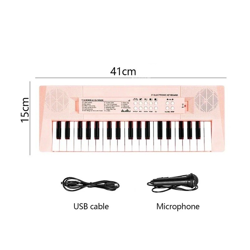 - Värikäs lasten elektroninen pianon mitat 41 cm x 15 cm ja 37 koskettimella