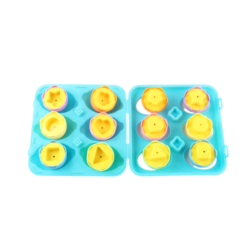 Etusivu Etusivu Kaikki lapsille Lelut lapsille Opettavaiset lelut Värikkäät leikkimunat 6 kpl muodoilla 4,5 x 5 cm Aukeava opettavainen lelu lajitteluun Motoristen taitojen ja koordinaation kehittäminen Laatikkona