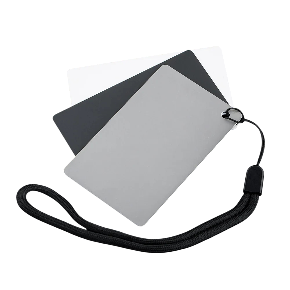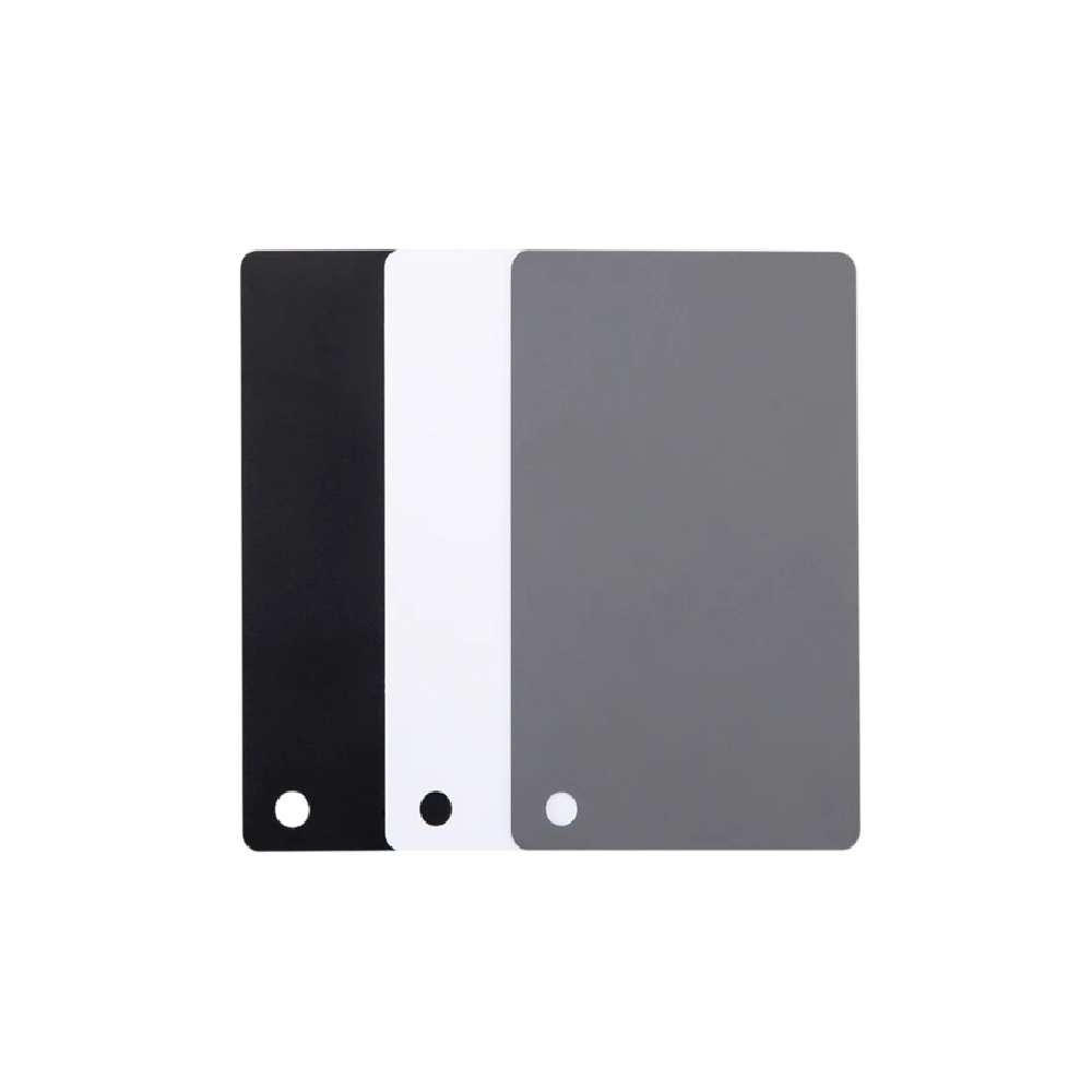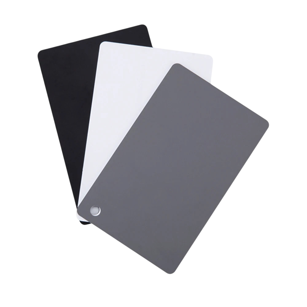 - Paketin sisältö: 3× värinkorjauskortti (musta, valkoinen, harmaa)