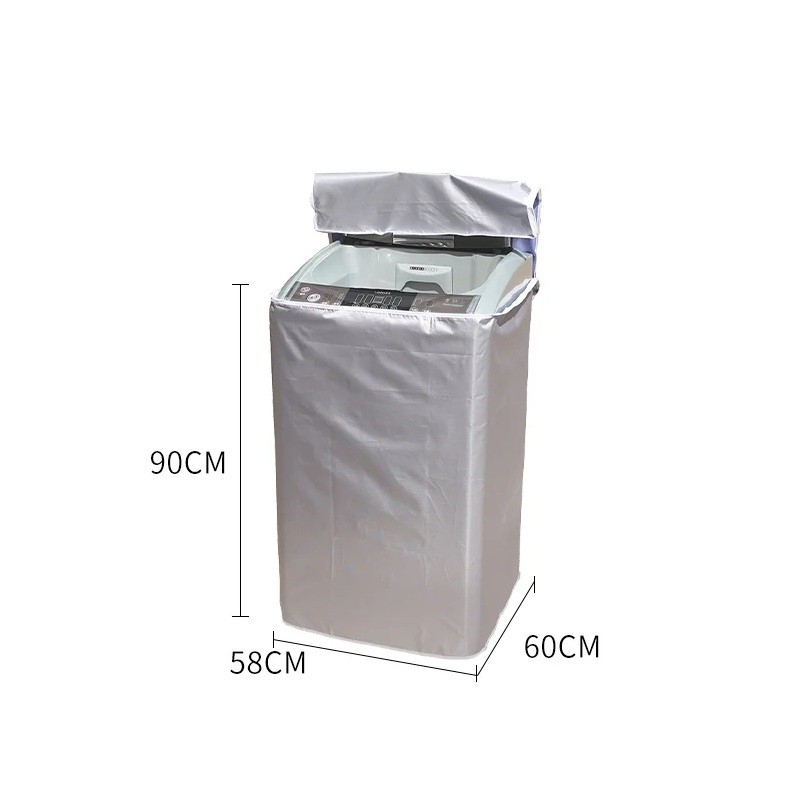 Vedenne vedenne suojaava peite pesukoneelle 58 × 60 × 90 cm Hopeinen pölyltä, auringolta ja kosteudelta etuvetoketjulla ja avattavalla kannella