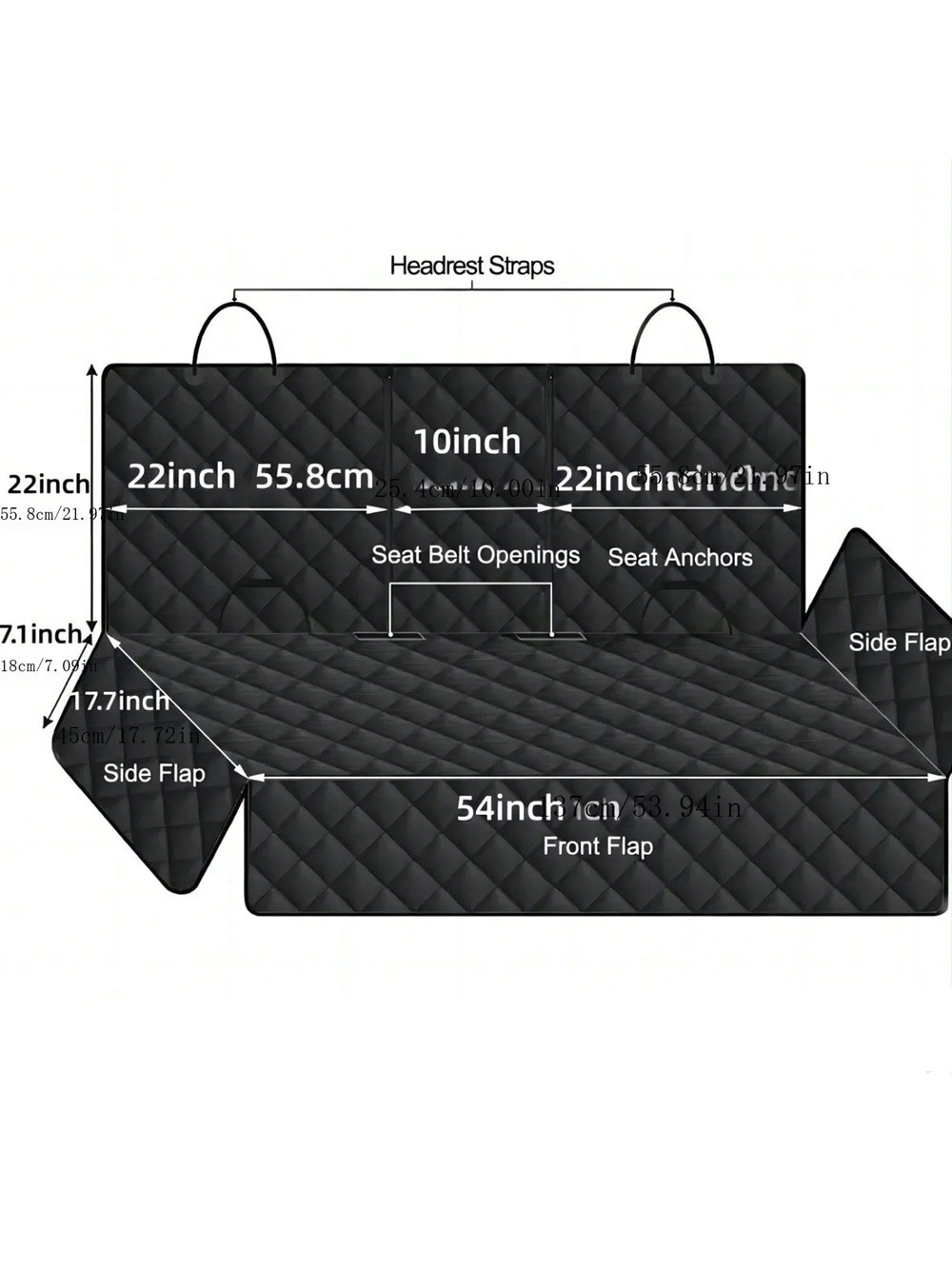 Suojataksesi ajoneuvosi takapenkit likaantumiselta, kosteudelta ja eläinten karvoilta, käytä tätä vedenpitävää peitettä. Yleiskoko turvavyöaukkojen kanssa. Täydellinen kuvaus