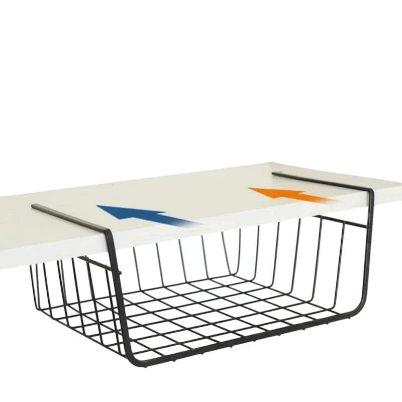 Käytännöllinen metallikori hyllyn alle luo lisää säilytystilaa ilman poraamista. Ihanteellinen keittiöön, kaappiin ja toimistoon asioiden selkeään järjestämiseen. Täydellinen kuvaus