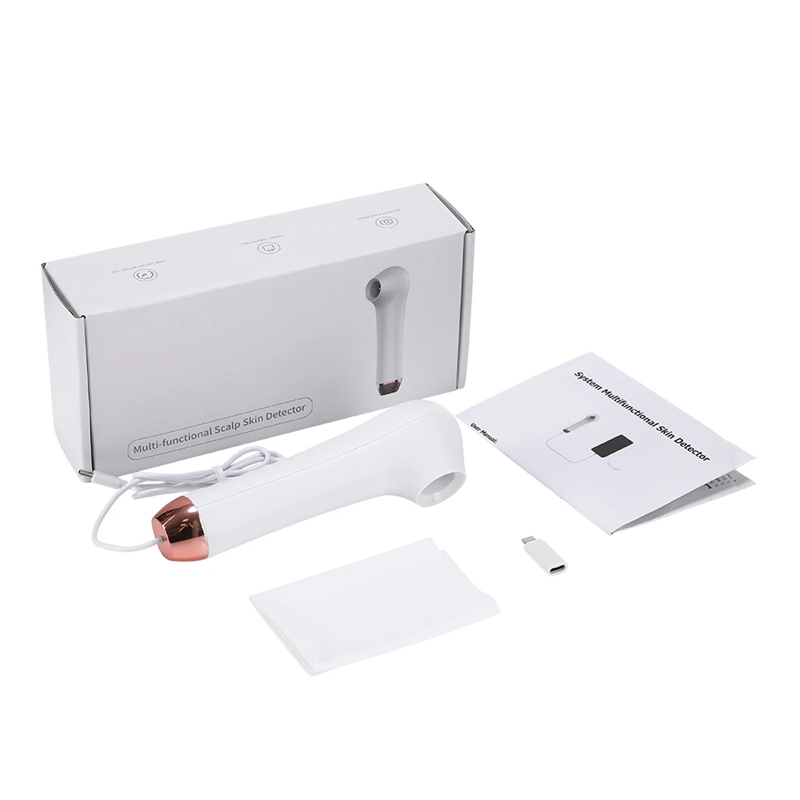 Paketin sisältö: Visuaalinen dermatoskooppi, USB-C-kaapeli, käyttöohje