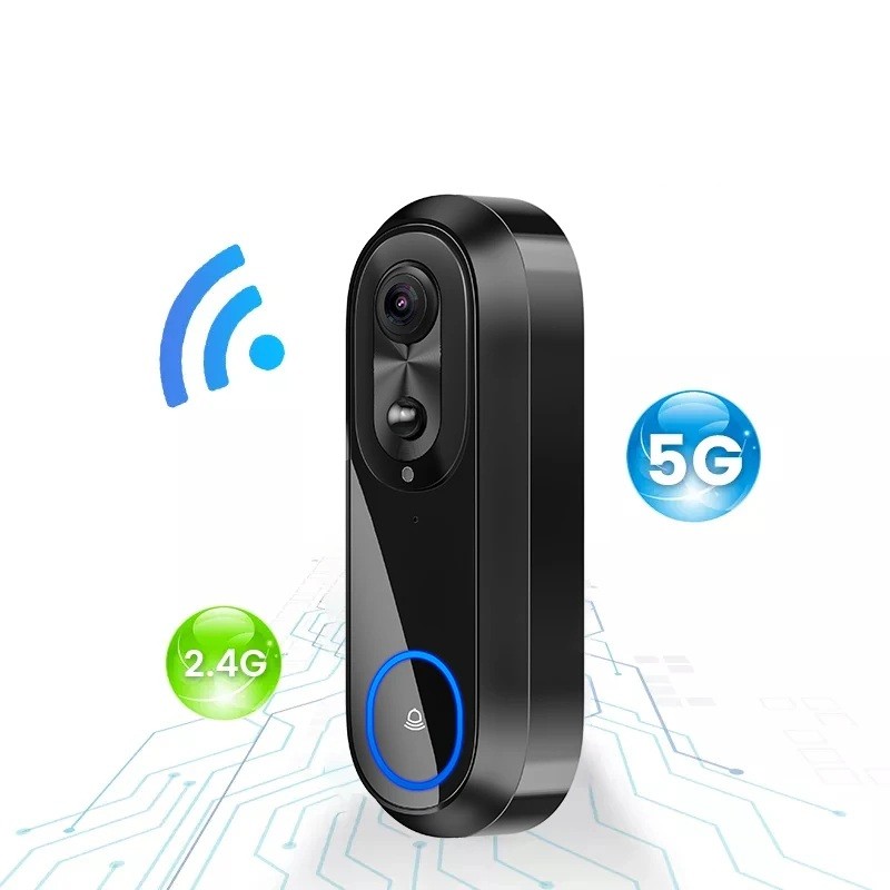 WiFi-videovalkoinen kamera 13,5 x 5 x 3 cm 1080P Tuya Smart langaton ovikello interkomilla IP65 Tämä moderni WiFi-videovalkoinen kamera on suunniteltu turvalliseen ja mukavaan valvontaan kodin sisäänkäynnillä mistä tahansa Tuya Smart -mobiilisovelluksen avulla. Se mahdollistaa kaksisuuntaisen ääniyhteyden, välittömät ilmoitukset soitosta sekä liikkeentunnistuksen ovella. Langattoman rakenteen ja akkuvirran ansiosta monimutkaista kaapelointia ei tarvita. Laite tukee 2,4 G:n ja 5 G:n WiFi-verkkojen liittämistä ja se on soveltuva ulkokäyttöön IP65-suojauksen ansiosta. Ihanteellinen ratkaisu koteihin, asuntoihin ja toimistoihin.