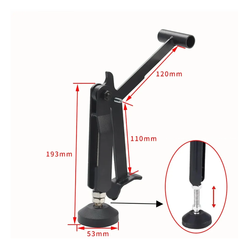 Etusivu Etusivu Auto ja moottoripyörä Moottoripyörätarvikkeet Yleinen nostotuki moottoripyörälle, jonka korkeus on säädettävissä 31 - 38 cm Liukumaton pohja Taitettava sivutuki