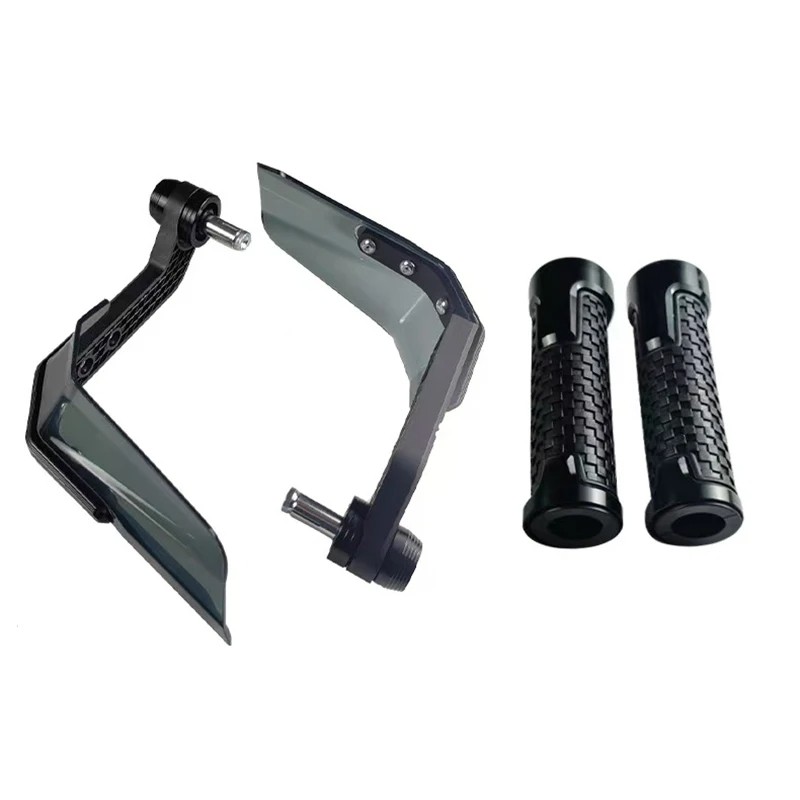 Yleinen tuulisuojus moottoripyörän, skootterin ja sähköpyörän ohjaustankoon, joka suojaa jarrukahvoja, alumiinivahvistus ja kahvasetti
