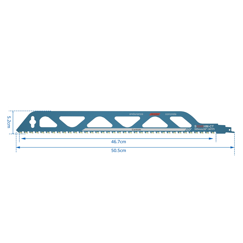 Yleisohjainterä kivi-, tiili- ja puupöydälle 505 mm seos 36TPI leikkuulevy terän pituus 467 mm leveys 52 mm varaosat