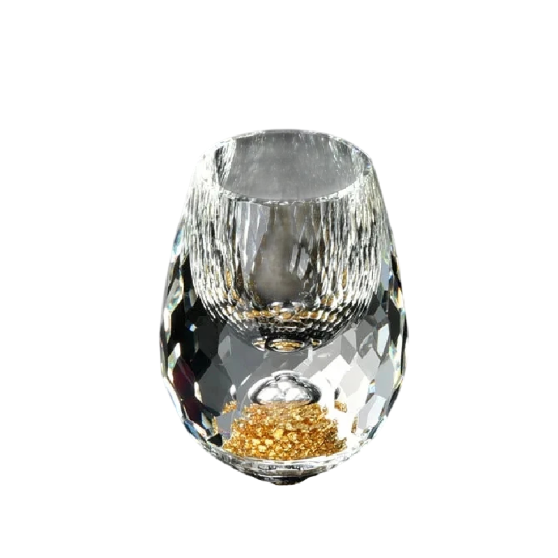 Ylellinen snapsilasi on tyylikäs lisä jokaiselle laadukkaiden väkevien juomien ystävälle. Se on valmistettu tarkasti käsitellystä kristallista, joka takaa täydellisen läpinäkyvyyden ja korkean kestävyyden. Uniikki muotoilu on täydentynyt hienolla timanttihiotulla pinnalla, joka antaa lasille eksklusiivisen ilmeen. Lasin pohjassa on aito kultakoriste 24K, joka luo ylellisen visuaalisen efektin jokaisessa juoman tarjoilussa. Kompaktien mittojensa ansiosta lasi sopii erinomaisesti sekä juhlatilaisuuksiin että arkikäyttöön.